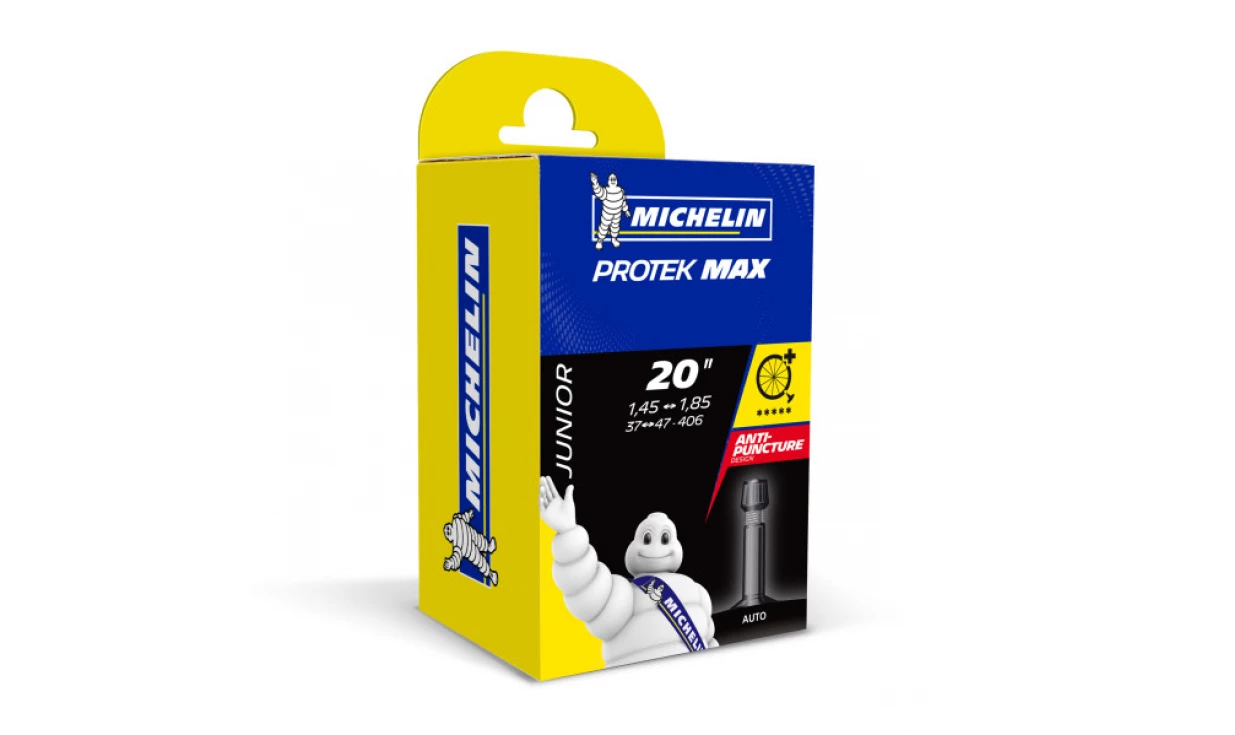 Michelin propose sa chambre à air haute qualité Protek Max avec liquide anti-crevaison, pour une résistance ultime. Le profil carré de la chambre à air facilite le montage au fond de la jante. Son design bosselé, quant à lui, permet à la chambre à air d’agir en compression, plutôt qu’en expansion comme les chambres à air classiques. Ainsi, en cas de perforation, le trou se rebouche tout seul au lieu de s’agrandir. Le liquide autoréparant présent dans la chambre à air vient alors obstruer entièrement le trou. Le pneu reste gonflé et vous pouvez continuer à pédaler.