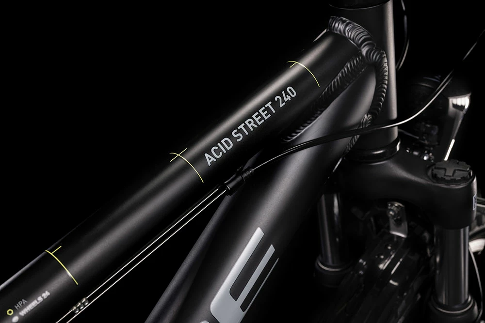Built from the same heat-treated 6061 aluminium tubes as the adult bikes, the Acid 240 Allroad’s frame is every bit as tough as a full-size mountain bike, but with the right weight and proportions for a child. A full range of accessories – including mudguards, lighting system and kickstand – means it’s fully equipped for any adventure. The handling is designed to be both fun and confidence-inspiring. And, because CUBE knows accidents can happen, they made the gear hanger easily replaceable so that a knock or crash needn’t result in an expensive repair.