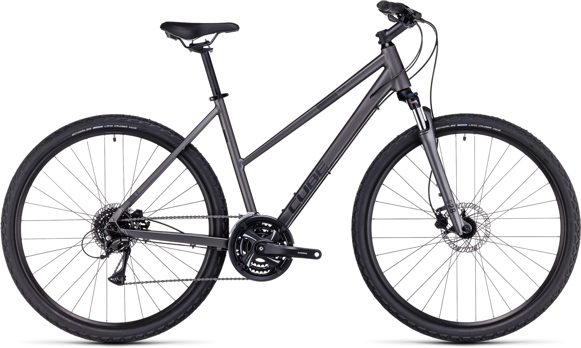 The Nature is all about freedom on two wheels, whether that means getting around town or exploring further afield at the weekends. Built with comfort and reliability in mind, CUBE has equipped it with a Suntour suspension fork to help take the edge off even the roughest of road surfaces. Shimano’s easy-to-use 3×8 gear system has the range to make light work of any route. And powerful all-weather hydraulic disc brakes give you the reassurance of safe stopping in any conditions. Where will it take you next?