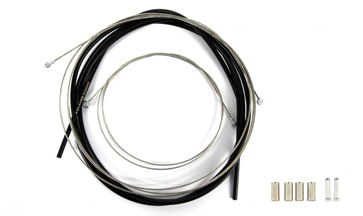 Kit de cablerie Shimano pour freins, compatible avec tout les systèmes de frein VTT et route, hors Campagnolo. Les câbles en acier inox possèdent les 2 types têtes, une à chaque extrémité. Il suffit donc de conserver uniquement la bonne avant le montage du câble.