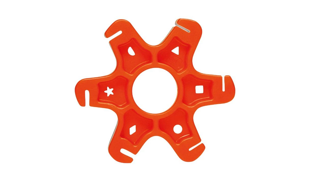 Cette clé à rayons aéro de qualité professionnelle est fabriquée en plastique, elle est de coloris orange. Elle dispose de 6 têtes pour guider différentes épaisseurs de rayons plats.