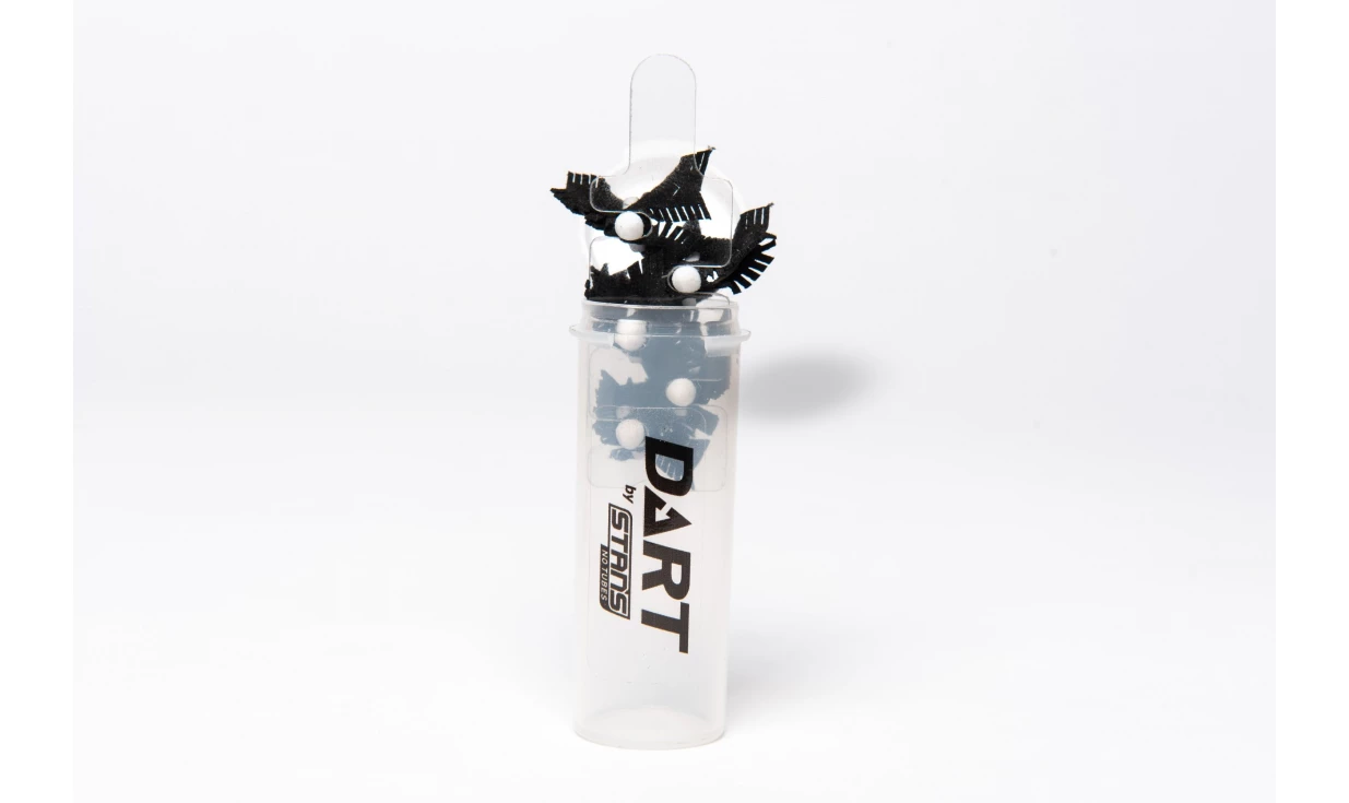Ce kit contient 5 mèches Dart equipées d’une pointe en plastique qui les fixe au pneu et leur empeche d’en ressortir. Il n’est pas nécessaire de couper les Darts une fois installés et on ne peut pas les sentir une fois en place en roulant, même sur des pneus vélo de route. Le kit inclut une boite en plastique étanche et un support à son intérieur pour récharger le kit de réparation facilement.