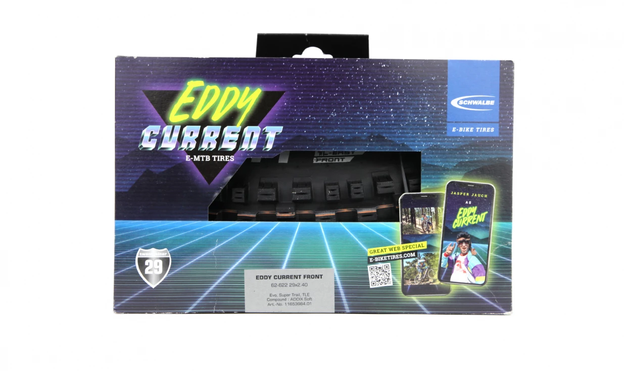Avec une section large, le pneu Eddy Current Front est spécialement pensé pour les pratiquants d’enduro, all-mountain et randonnées en VTT électrique, qui roulent avec des cycles plus lourds. Il est doté d’une bande de roulement à gros crampons centraux et latéraux, comme on peut en retrouver sur les pneus de motocross. Il offre ainsi une conduite précise et fiable sur les sentiers les plus cahoteux, que ce soit en descente ou en montée.
