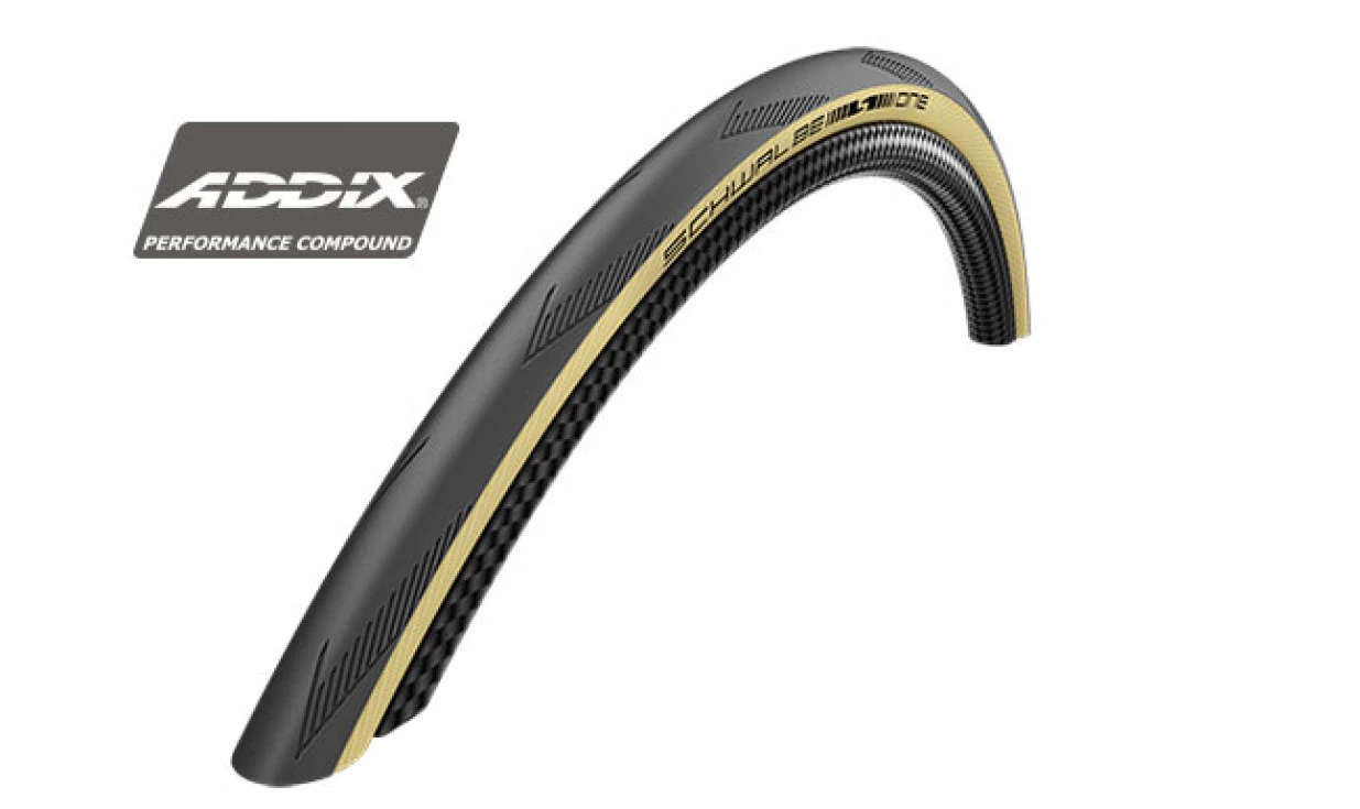 Le nouveau pneu route Schwalbe One est conçu pour la compétition autant que pour les entraînements. Il s’inspire du précédant Pro One, le pneu route Schwalbe haut de gamme et se positionne en alternative plus économique. La nouvelle gomme Addix associe performance et durabilité. La bande de roulement est protégée contre les perforations et les coupures par le renfort RaceGuard qui consiste en deux couches de Nylon. La carcasse de 67 tpi combine robustesse et rendement. Le Schwalbe One se montre polyvalent et fiable.