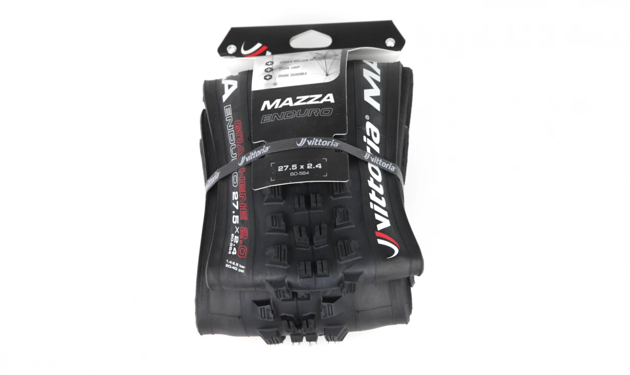 Dans cette version 2-plis avec carcasse Enduro/Emtb, le Pneu Mazza est conçu pour la compétition en enduro et pour les EVTT. Cette carcasse Enduro solide comprend deux couches de 120 tpi, un renfort anti-crevaison sur les flancs et des tringles souples en Aramide pour un montage Tubeless Ready facilité. Ce pneu quasi increvable assure sérénité lors des compétitions. La gomme 4C avec ajout de Graphene 2.0 est particulièrement durable, ce qui fait de ce pneu un très bon choix pour le VTT électrique en compétition. Pour du VTTAE Enduro de loisir, Vittoria propose en plus le pneu VTTAE Enduro e-Mazza, conçu pour optimiser la batterie du VAE.