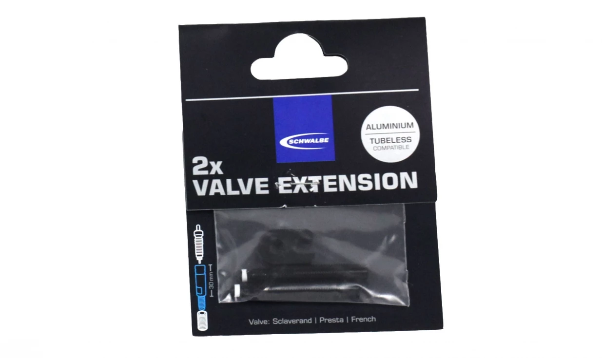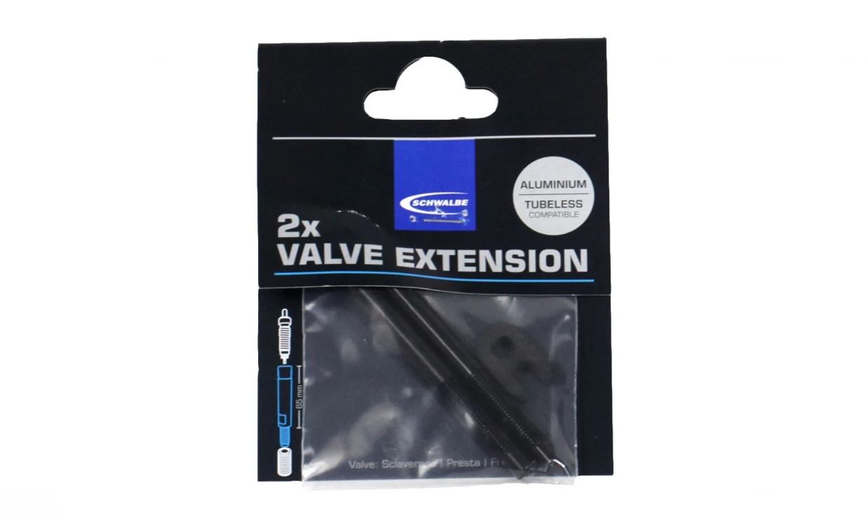 Extensions Schwalbe pour valves de chambres-à-air, de boyaux et de pneus tubeless.