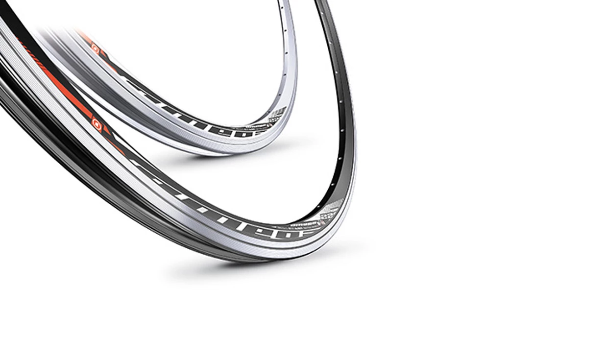 – une jante double paroi Omega Mach1 de dimension 622-13C couleur gris anodisé d’un poids de 460 g. La jante a une largeur interne de 13 mm, externe de 19 mm et dispose d’un espace de 6,5 mm de diamètre pour le passage d’une valve presta. Il s’agit, en effet, d’une jante Tubetype qui nécessite un montage avec chambres à air.