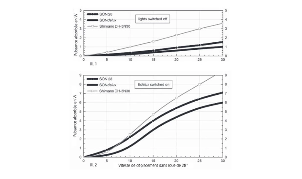 Le poids de la jante est de 550 grammes ; celui de la dynamo est de 390 grammes et la roue complète pèse 1 250 grammes.