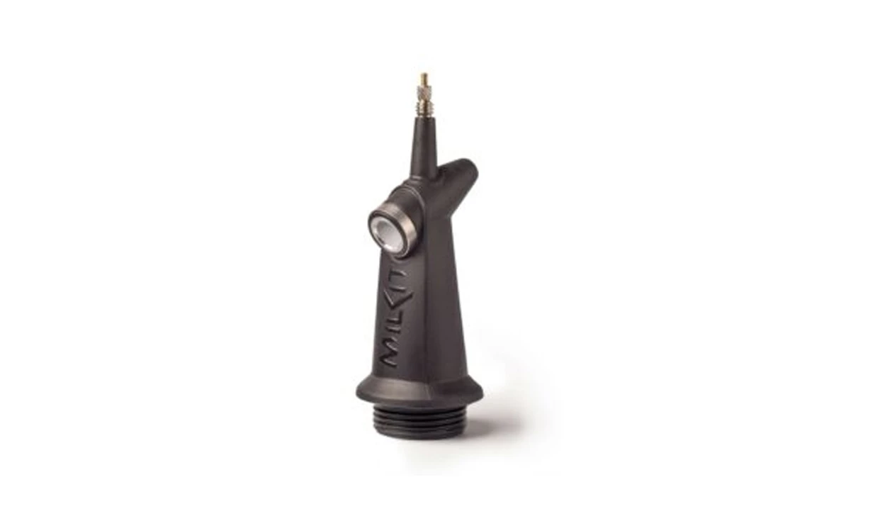Milkit propose en pièce détachée une tête de rechange pour son gonfleur Booster. Elle est compatible avec les modèles 0.6 L et 0.75 L. La tête de remplacement Milkit est ingénieuse car elle se fixe directement à la bouteille. Aucun tuyau supplémentaire n’est à ajouter entre les deux, ce qui permet à l’air d’être propulsé directement dans la valve. En effet, la tête vient se visser sur la bouteille d’air. À noter que le filetage est un filetage standard.